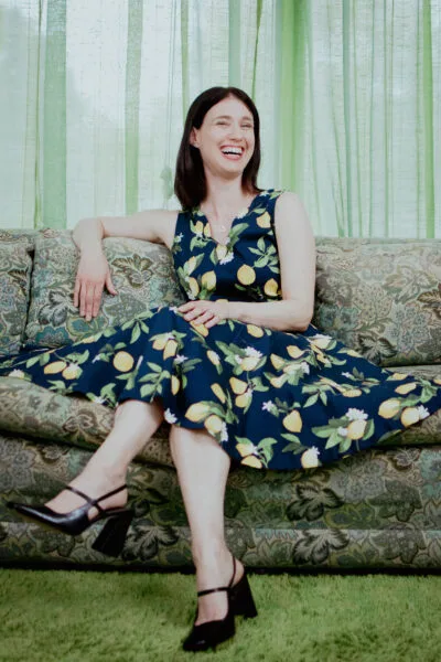 A lover of fun textures, patterns, and colours, Goodine finds herself choosing fabrics based on aesthetic gut reactions. Her first collection featured a navy fabric with lemons, a design she says was “love at first sight.”