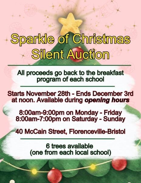 See the trees and submit a bid at the R.G. “Bun” Veysey Active Living Centre in Florenceville-Bristol during the centre’s opening hours starting on Friday, Nov. 28. The auction will close on Wednesday, Dec. 3, at noon.