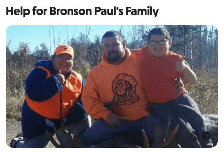 Members of Neqotkuk First Nation have set up a GoFundMe account to help the family of Bronson Paul.