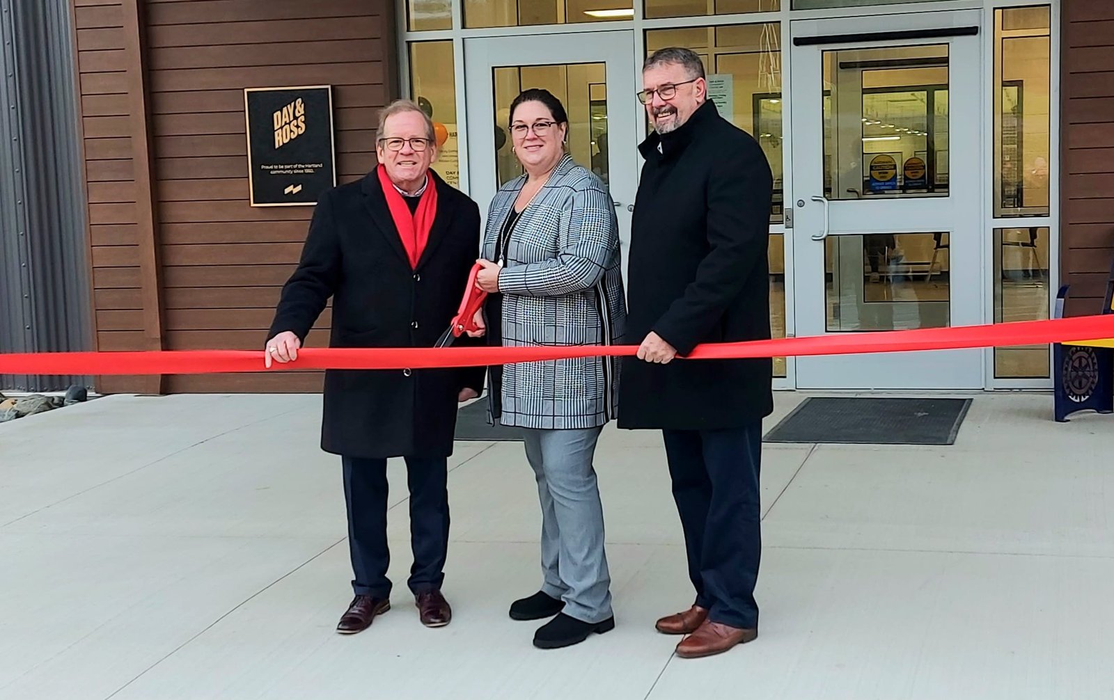 The ribbon was cut just after 4 p.m. Friday, Nov. 14, outside the front doors of the new Day & Ross Community Centre. The ceremony officially opened Hartland’s long-planned arena complex.
