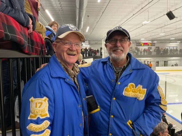 Gary Smith of Lakeville and Ivan Shaw of Simonds spent years as teammates and linemates on the former Hartland Senior Hockey Sabres, playing out of the old arena. Both, wearing their old Sabres jackets, said they were “thrilled” to attend opening night at the Day & Ross Community Centre.