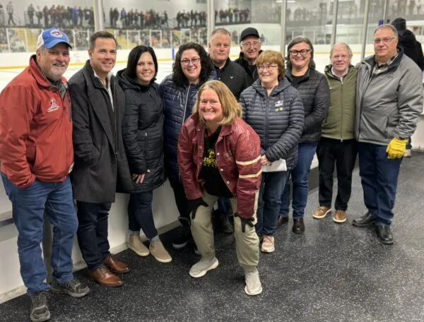 Several members of the centre’s building committee and fundraising committee, Friends of Hartland Inc., attended opening night and joined the mayor for the ceremonial puck drop.