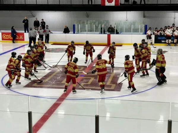After Mayor DeMerchant led the singing of O Canada, Hartland’s Day & Ross Community Centre era began as the Huskies and Nighthawks faced off for its inaugural event.