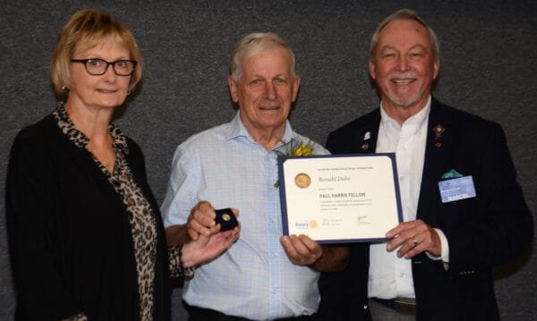 Ron Dube joked the tributes sounded like a “celebration of life, but I’m still here”, but said he was honoured to be chosen by Rotarians for the Paul Harris award. He congratulated fellow recipient Jeanne Cronk for her community service.